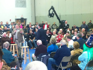 At an event at a middle school in Bedford, New Hampshire, Chris Christie appeared to be gaining momentum. The New Jersey governor's crowd was packed with about 400 spectators. He was joined by Maine Governor Paul LePage for a town hall style meeting.