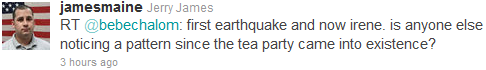 And then the even kooky-er. This fellow ties the existence of the Tea Party to Irene and an earthquake: